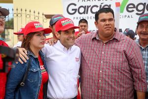 En su visita a Peñasco estuvo acompañado por los candidatos a la presidencia municipal, Francisco García Vega y a la diputación local, la Profesora Rafaela Félix Bernal.