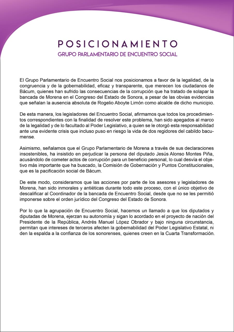 Posicionamiento del Grupo Parlamentario de Encuentro Social