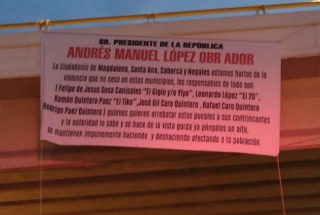Bueno, suponemos que a pesar de que esas mantas fueron removidas rápidamente, el destinatario recibió el mensaje en el cual se ponen nombres y apellidos de famosos liderazgos del narco en esa caliente región de Sonora, sin que tengamos confirmación si como respuesta les envió muchos abrazos.