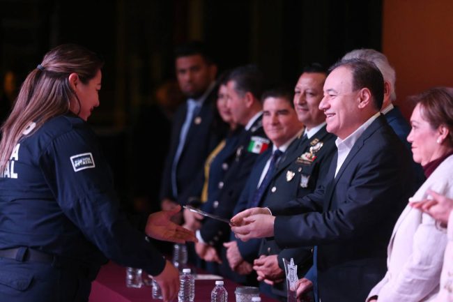De igual forma, se entregaron reconocimientos a elementos por su tiempo de servicio y en diversas categorías, como Mérito Cívico, Mérito al Valor y Mérito Docente. Mario Alfonso Rivera Coronado recibió el galardón como Policía del Año.