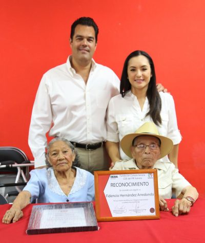 Don Fidencio Hernández Arredondo dijo que no esperaba este reconocimiento, el cual agradeció a nombre de su familia, y con voz quebrantada se lo dedicó a su mamá.