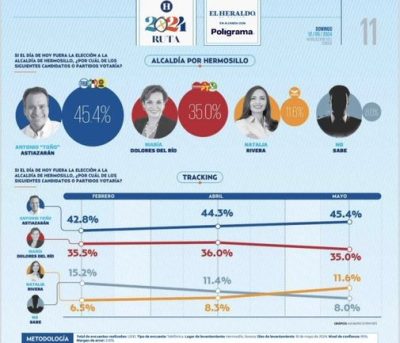 Si el espectacular aludido es campaña negra pues está basada en la realidad, faltando solo que digan también lo es la publicación de una encuesta levantada el mero día de las madres donde el presidente municipal de Hermosillo aparece con 10.4 puntos arriba de la expanista y exemecista, en lo que parece ser una tendencia irreversible a tres semanas de la elección.