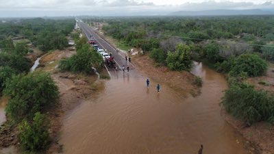 Lo mejor de todo es que este fin de semana hubo un buen remojón y este lunes abundan chubascos trecheros, con reportes de crecidas de ríos y arroyos de diversas partes del nororiente y sur de Sonora, sin que afortunadamente las cosas hayan pasado a cosas mayores, destacando el efectivo operativo de prevención, la buena respuesta ciudadana a la alerta meteorológica y a la estrategia de protección desplegada durante la prolongada tormenta.