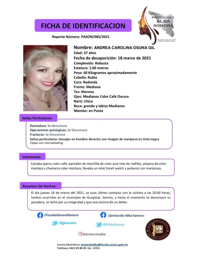 Solicitamos su apoyo para socializar esta Alerta de Protocolo Alba Sonora. De antemano, ¡GRACIAS!