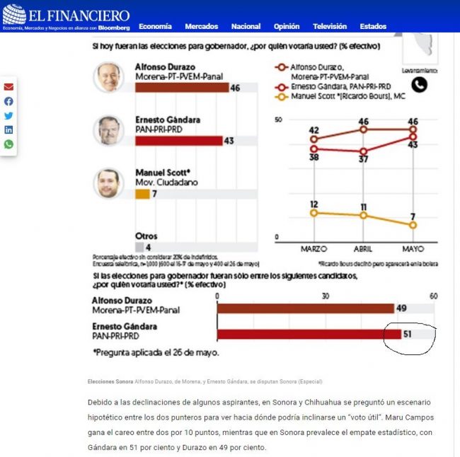 En lugar de pretender manipular la percepción ciudadana falseando algo tan evidente, deberían sentirse satisfechos por haber logrado una asistencia decente, luego de ya varias semanas de gatos negros, con desangelados cierres en otras ciudades de la entidad, en comparación de la consistente tendencia de las movilizaciones de la Alianza Va Por Sonora, que con Ernesto Gándara Camou a la cabeza, sin ponerle de más y sin ponerle de menos, ha superado con creces, ahí sí dos a uno ha reunido multitudes que apoyan su candidatura, sin tener que amenazar, ni comprar voluntades.