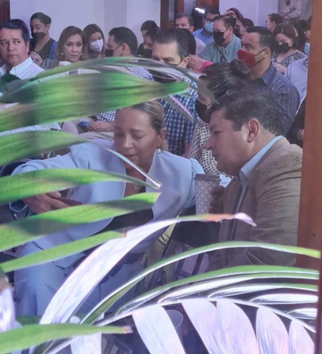Además, en primera fila estuvo el presidente del Congreso del Estado, el diputado del partido oficial Jacobo Mendoza, en intenso y extenso platique con la autora intelectual del plan anunciado, Flor Ayala Robles Linares, Tesorera de la comuna, y más allá la también legisladora de MORENA, Celeste Taddei, aportando equidad debida la presencia de las diputadas del PRI, Natalia Rivera y Ely Sallard, quien también se echó buena plática con el secretario del Ayuntamiento, Florencio Díaz Armenta.