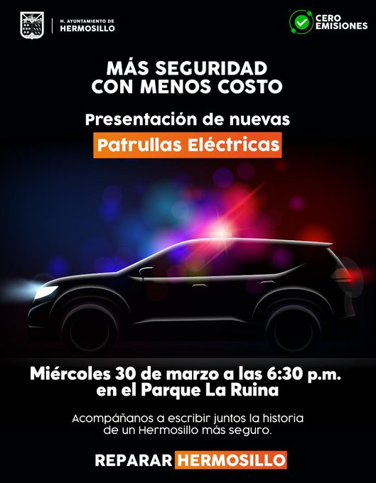 Sin salirnos del rumbo, como ya se sabe, con el alcalde Antonio Astiazarán del dicho al hecho hay un trecho muy pequeño y por eso esta tarde de miércoles, a eso de las siete de la tarde será presentado y entregado el primer lote de patrullas eléctricas que se suman a las moto patrullas que ya tienen varios días apoyando a los hermosillenses en tareas de seguridad.