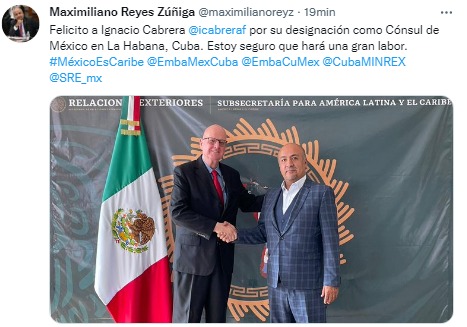 Y antes de que se nos pase, qué gusto nos da el que nuestro añejo amigo, el profesional de la arquitectura, Ignacio Cabrera Fernández, haya sido nombrado Cónsul de México en La Habana, luego de picar piedra por varios años siempre al lado del canciller Marcelo Ebrard.