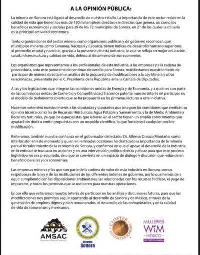 No prosperó la gestión del gobernador Durazo en favor de la minería de Sonora.