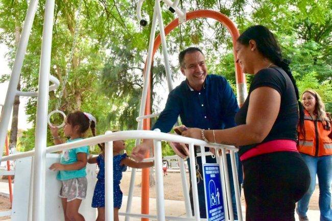 A nombre de residentes, la vecina Juanita Guerrero agradeció el visible cambio de este parque en el que además se realizaron jornadas de limpieza, mejoras que podrán disfrutar tanto familias del Ranchito como las colonias Bella Vista, Metalera y Amapolas.