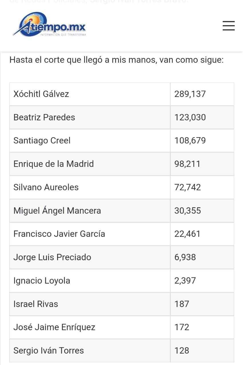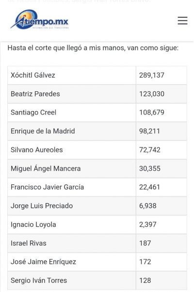 Por lo pronto todo ese cronograma podría ser simplificado ya que, de acuerdo con las cifras de apoyos recibidos, con casi 290 mil firmas, Xóchitl Gálvez es la indiscutible ganadora, sin que tengamos idea si completarán la cuota Beatriz Paredes con poco más de 123 mil firmas, Santiago Creel con casi 109 mil, y Enrique de la Madrid con poco más de 98 mil 200 apoyos.