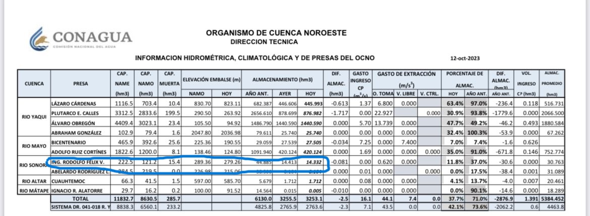 Y no, la Presa El Molinito no está siempre llena; es más, la mayoría de las veces está medio vacía, como en estos momentos en que CONAGUA tiene un registro de 14.3 millones de metros cúbicos en su embalse, que como se sabe tiene capacidad para contener y puede manejar volúmenes de hasta 122 millones de metros cúbicos, y que luego de las buenas precipitaciones en el monzón mexicano del 2022, dichos volúmenes trasvasados –dos millones de metros cúbicos mensuales—a la ALR, son aprovechados para abastecer a Hermosillo hasta ahora.