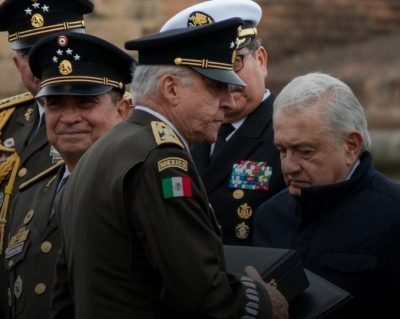 Y este reportero también reconoce estar azorado y asombrado por la actitud obsequiosa y luego sumisa del presidente Andrés Manuel López Obrador, quien, rodeado de lo más rancio de la cultura militar de este país, se vio obligado a entregar un reconocimiento al general de división, diplomado de Estado Mayor y exsecretario de la Defensa Nacional, Salvador Cienfuegos, por haber sido director del Heroico Colegio Militar, institución matriz del desaparecido Estado Mayor Presidencial.
