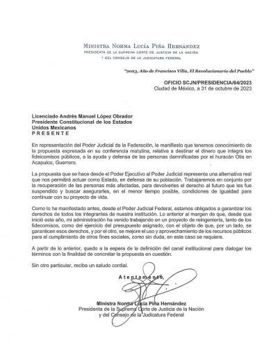 Y tenga para que aprenda, vea usted la bofetada con guante blanco de la ministra titular del Poder Judicial, Norma Piña, quien de inicio aceptó la propuesta y propone reunión con su par del ejecutivo para afinar detalles al respecto, aunque seguramente el arrogante no aceptará.