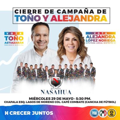 Por cierto, la López Noriega invita al cierre de campaña para mañana miércoles a eso de las cinco y media de la tarde en la cancha de futbol de la colonia Café Combate, donde presidido por el Toño Astiazarán se pondrá buena la fiesta amenizada por la Banda NASHAUA.
