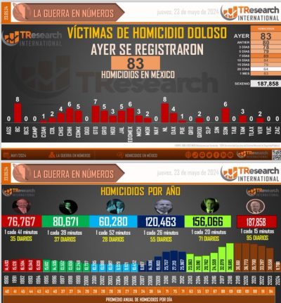 Dicho homicidio doloso es uno de los casi 90 registrados el miércoles en el país—aunque está el indeterminado número de víctimas que luego serán descubiertas en fosas clandestinas—para una suma oficial desde diciembre del 2018 al 22 de mayo del 2024 de 187 mil 858, de los cuales, ocho mil 871 corresponden a Sonora, pero hay quienes predican en favor del continuismo.