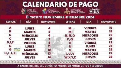La entrega inició el pasado 4 de noviembre y se extenderá hasta el 28 en función de la letra inicial del apellido paterno de quienes reciben dichos beneficios, que permiten costear los gastos esenciales para vivir, como alimentos, artículos de higiene y medicinas.
