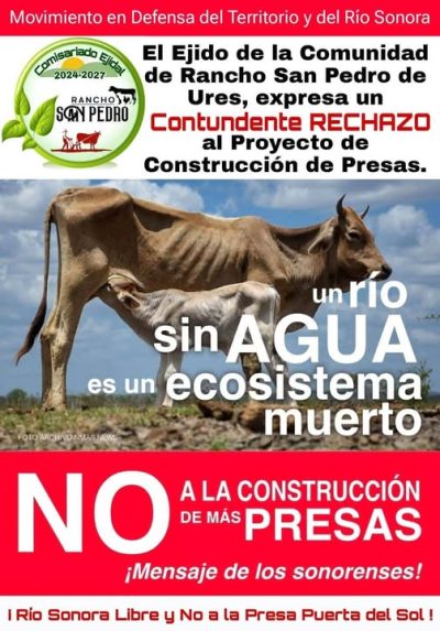 Mientras tanto, no se percibe por ningún lado algún operativo de convencimiento, de diálogo, de información ni de nada, de parte de la Comisión Nacional del Agua, de la SEMARNAT ni de PROFEPA, frente al creciente rechazo de representantes de sectores productivos y sociales de comunidades sobre las cuencas del Río Sonora y el San Miguel, de la construcción de tres presas anunciada hace unos días.