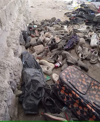 Sabe cuál sea el número de seres humanos que pasaron por ahí víctimas de secuestro al ser enganchados con sugerentes ofertas de trabajo, pero en esa siniestra propiedad se hallaron tenis, botas, zapatillas, huaraches, sandalias, uniformes, chamarras, playeras, blusas, pantalones, cinturones, carteras, billeteras, identificaciones, artículos de aseo personal, mochilas y maletas.