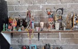 Izaguirre Ranch se lee en el portón metálico pintado de negro, y adentro, el horror de lo que fue un campo de adiestramiento y de exterminio, con tres hornos crematorios aún con restos humanos, fosas clandestinas y un altar con varias figuras de la Santa Muerte.